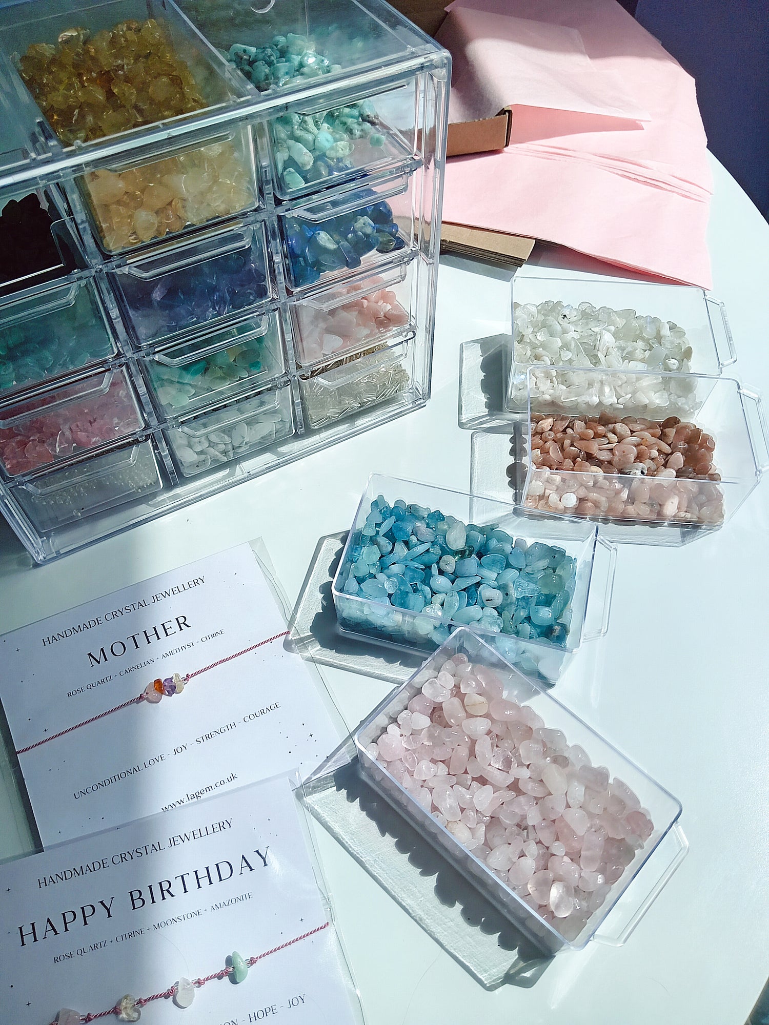 Moonstone – Supports emotional balance, inner knowing, and feminine wisdom.