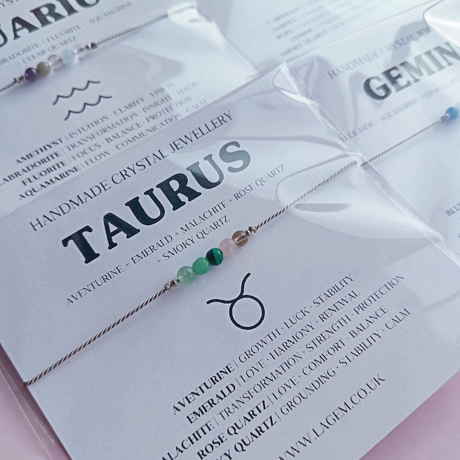 Zodiac Crystal Bracelet | Minimalist 4mm Beads | Adjustable Silk Cord